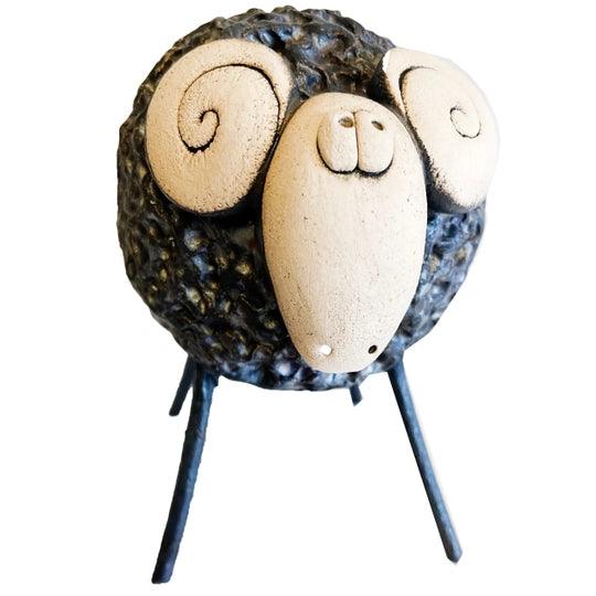 This ram character figurine stands out with its stylish, woolly fluffed-up coat and makes a most unusual farmyard friend when positioned about the house. Whether placed in a living room or bedroom, the figurine's vibrant colors and detailed craftsmanship bring a sense of fun and whimsy to any setting. A great gift for the modern country lover.